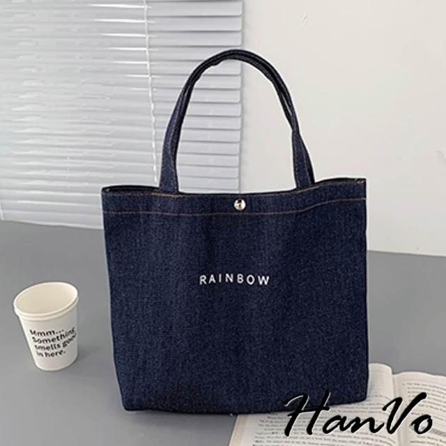 HanVo現貨 日系丹寧牛仔帆布手提包(簡約百搭實用肩背包 上課上班牛仔布包 女生配件 C05-1079)
