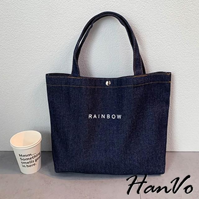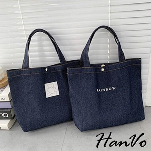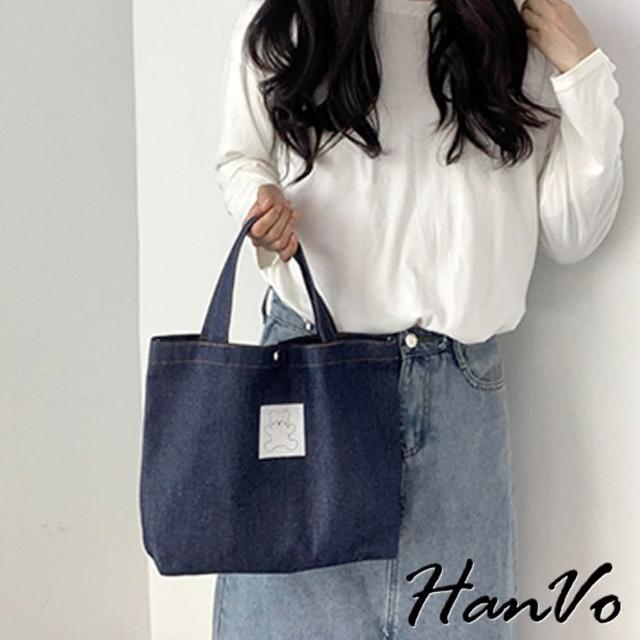 HanVo現貨 日系丹寧牛仔帆布手提包(簡約百搭實用肩背包 上課上班牛仔布包 女生配件 C05-1079)