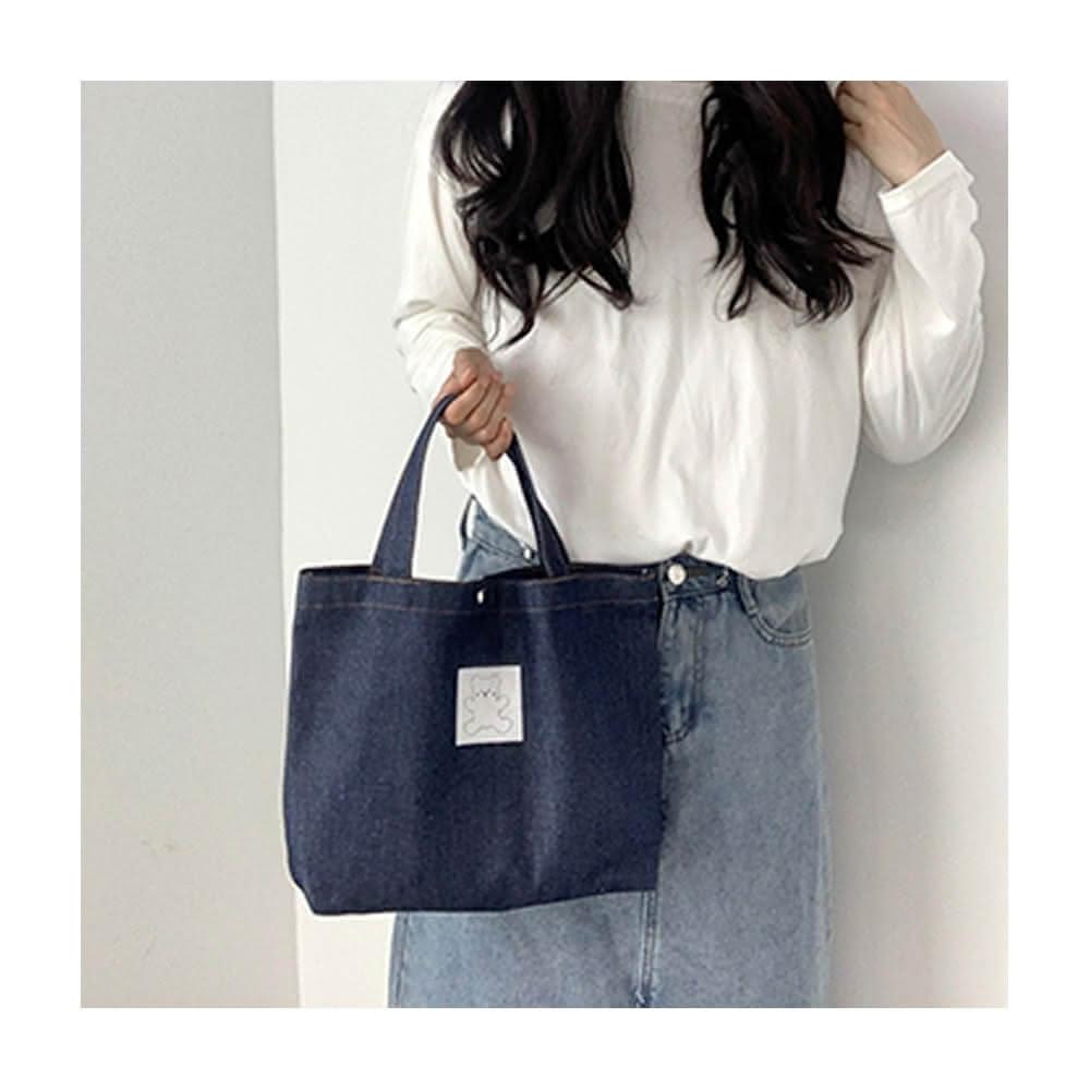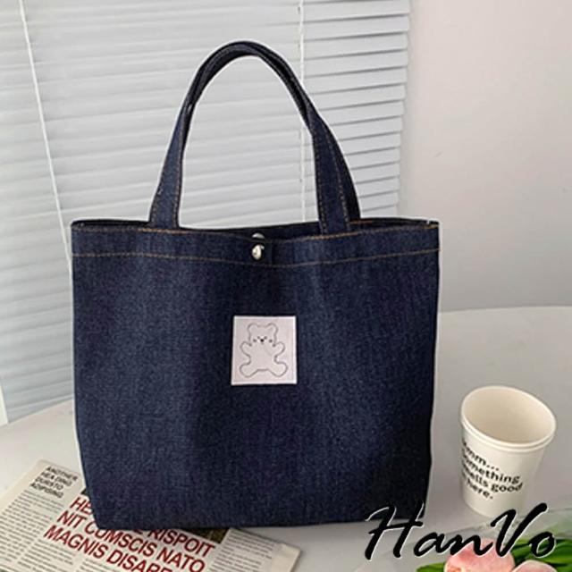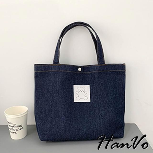 HanVo現貨 日系丹寧牛仔帆布手提包(簡約百搭實用肩背包 上課上班牛仔布包 女生配件 C05-1079)