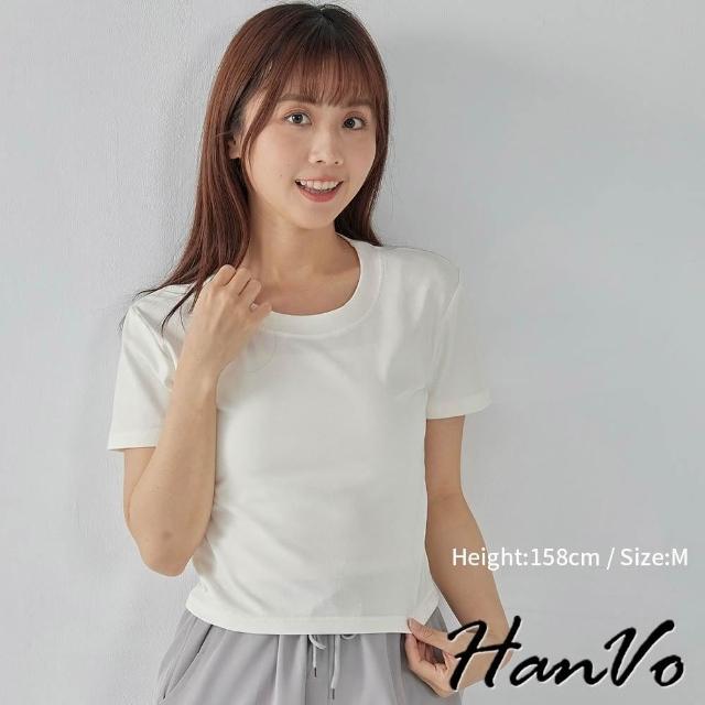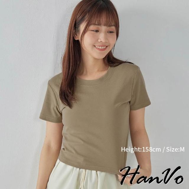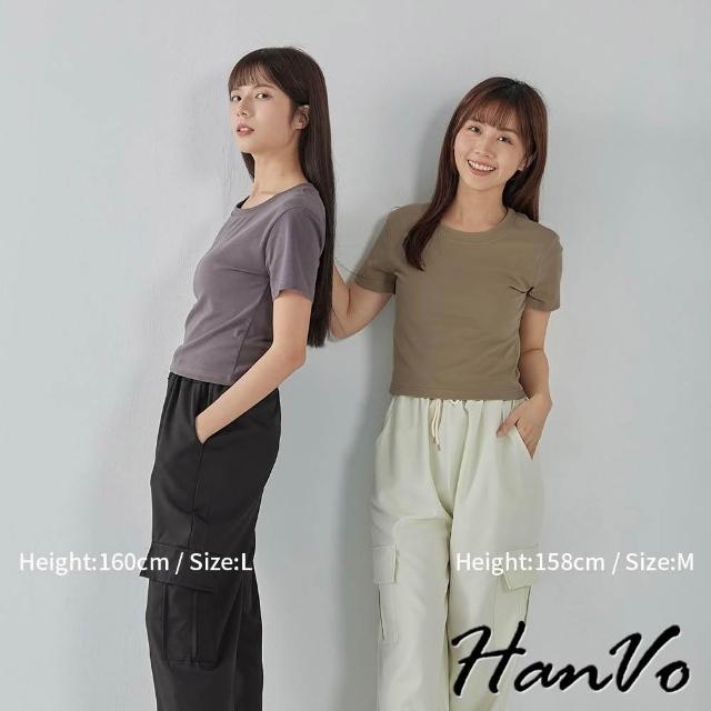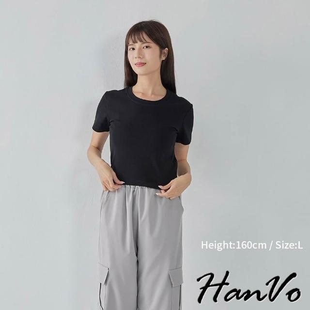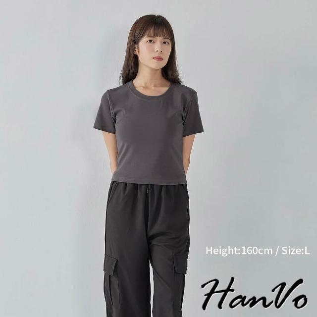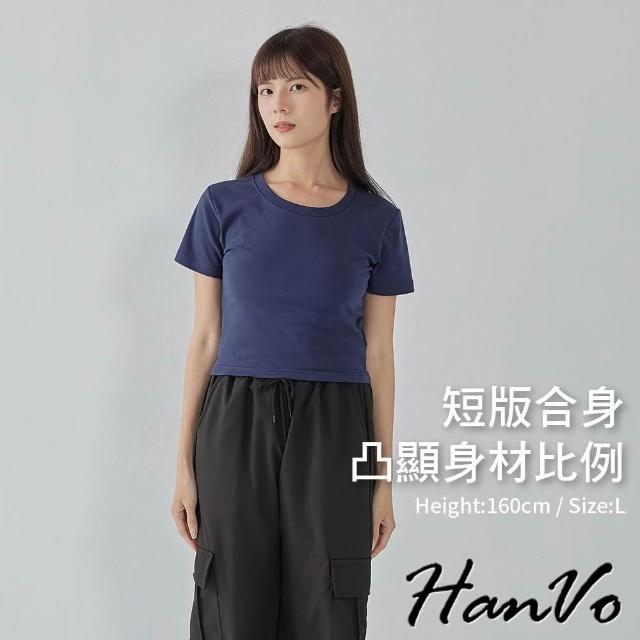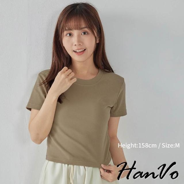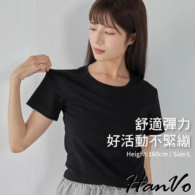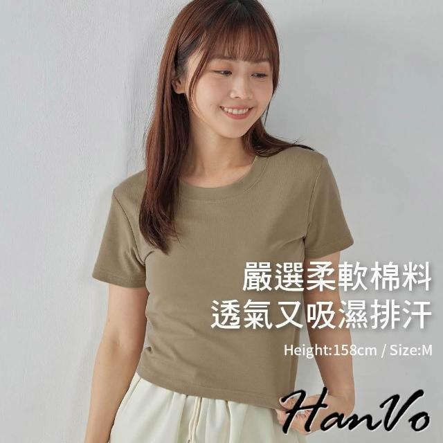 HanVo現貨 棉質圓領短版短袖T恤 優質剪裁親膚舒適 百搭實穿休閒上衣 韓系女裝 女生衣著 A01-0326