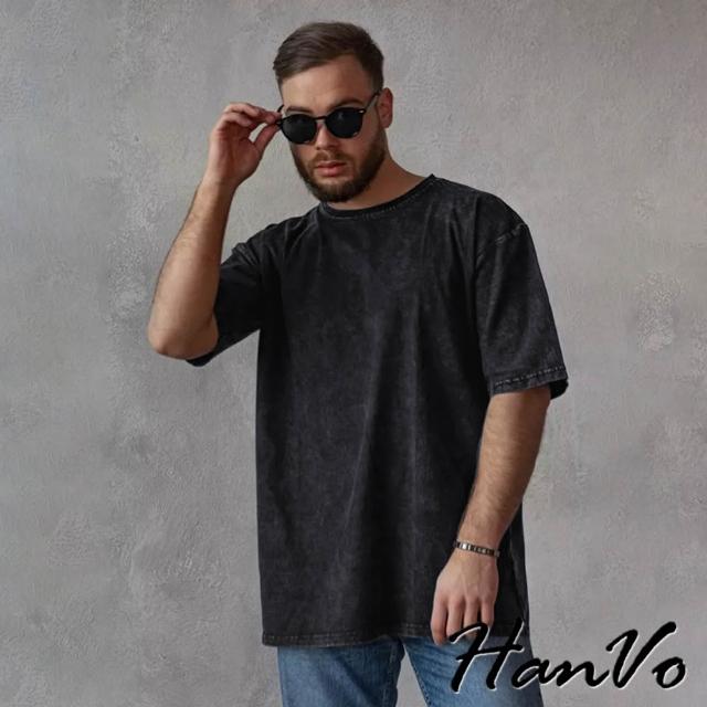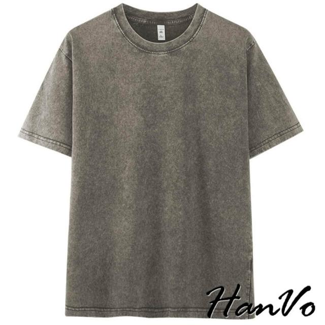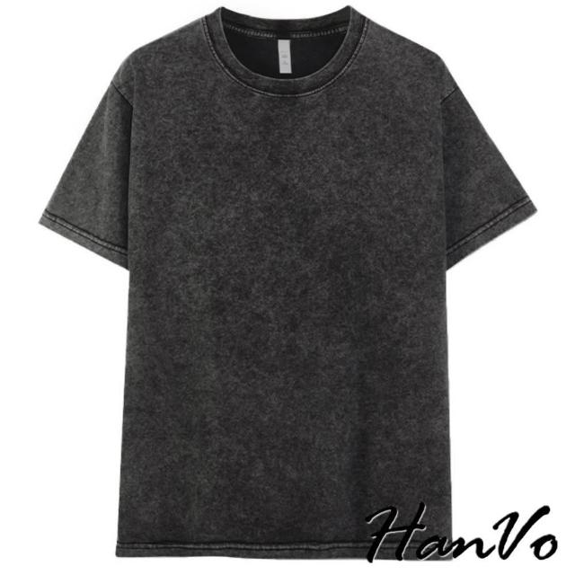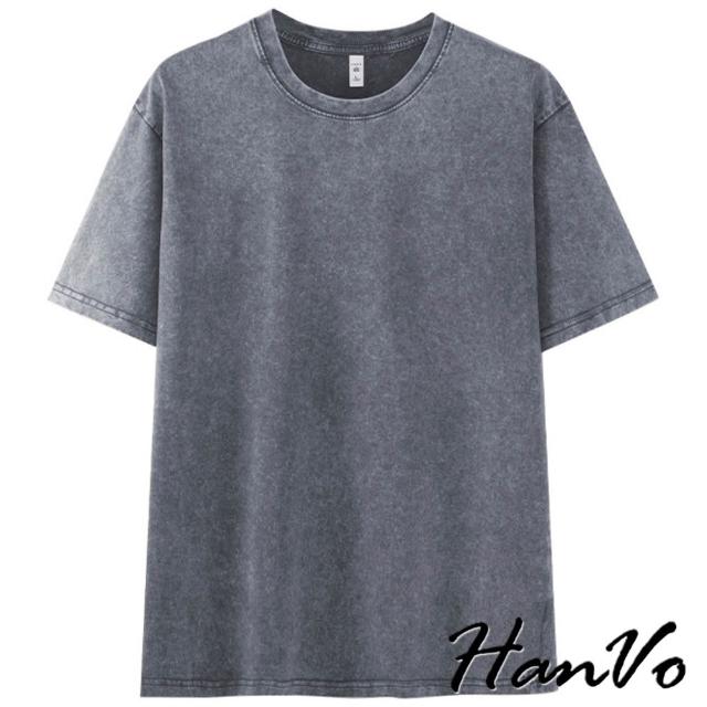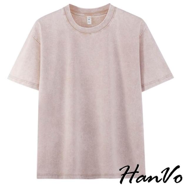 HanVo現貨 男女適穿! 復古水洗純棉落肩T恤 寬鬆版型圓領 柔軟親膚涼爽透氣 男女衣著 A01-0327