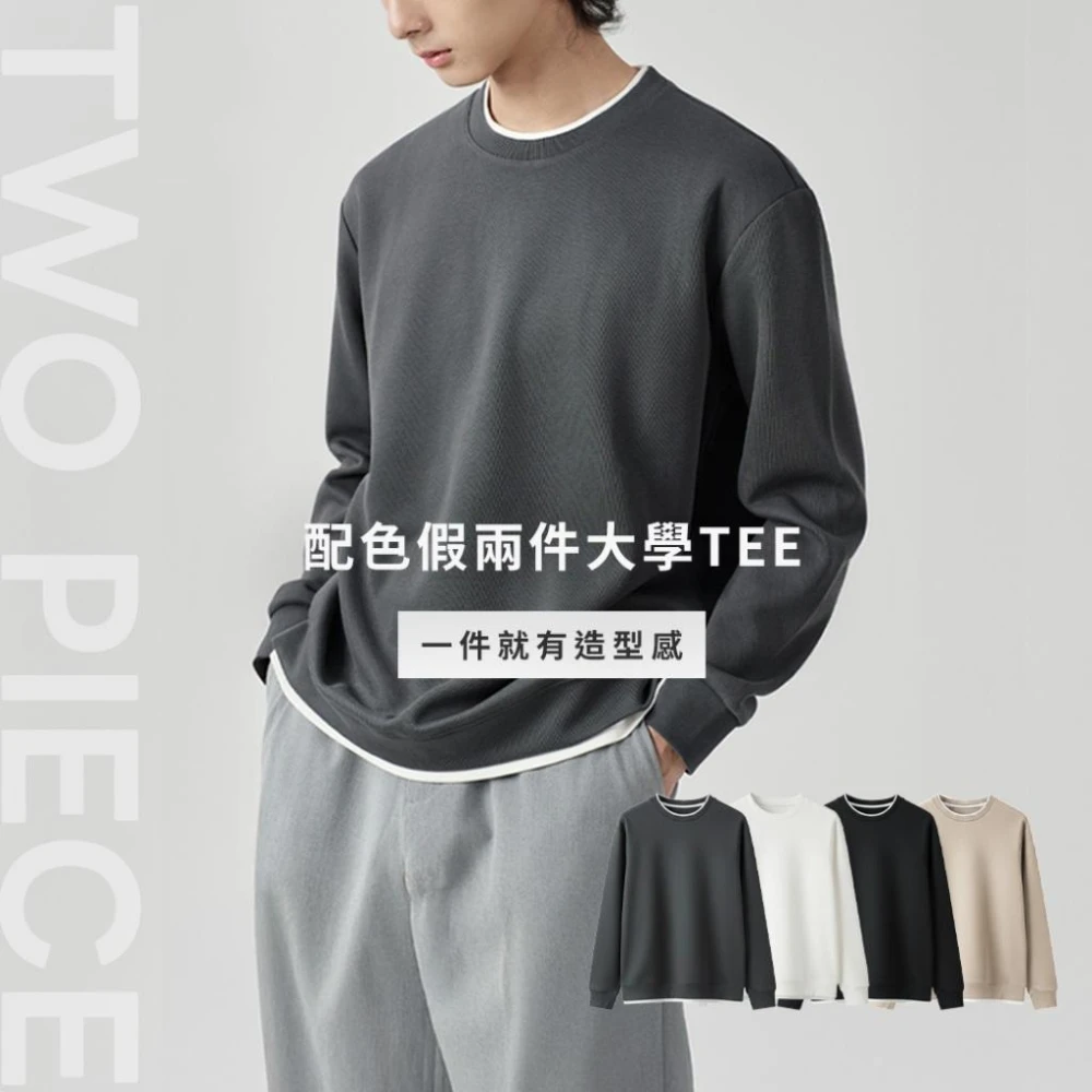 JERSCY厚磅配色假兩件大學TEE 大學t長袖 假兩件長袖 長袖上衣 長袖t恤 長袖t [2513103]