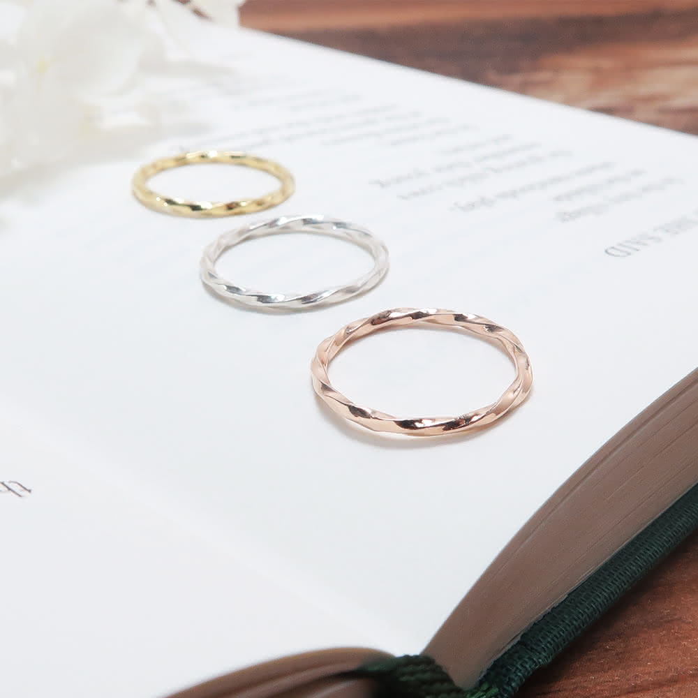 ART64純銀方扭戒指(手工純銀 線戒 尾戒 女戒 銀色 18K金色 玫瑰金)
