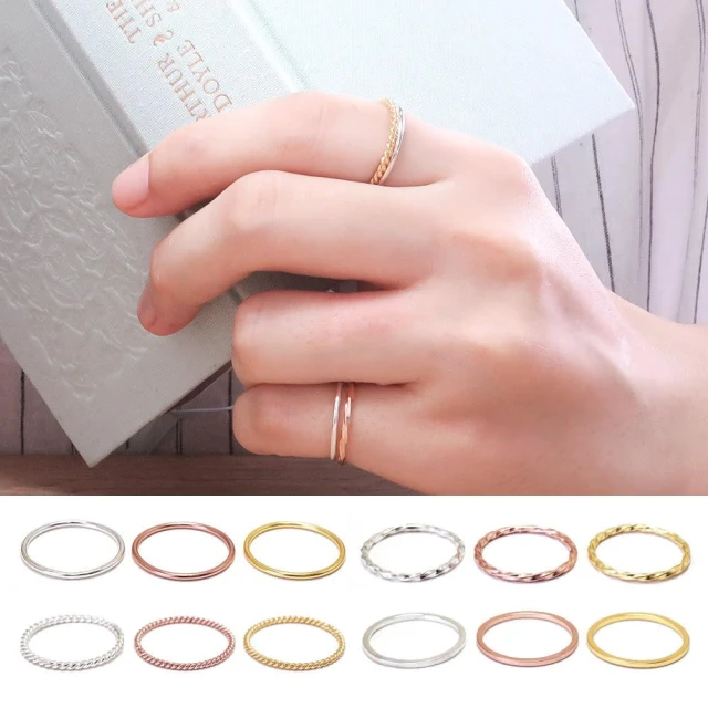 ART64純銀手工 三色 線戒 細戒指 尾戒 麻花戒 (925純銀戒指 銀色 金色 玫瑰金 多色可選 女戒)