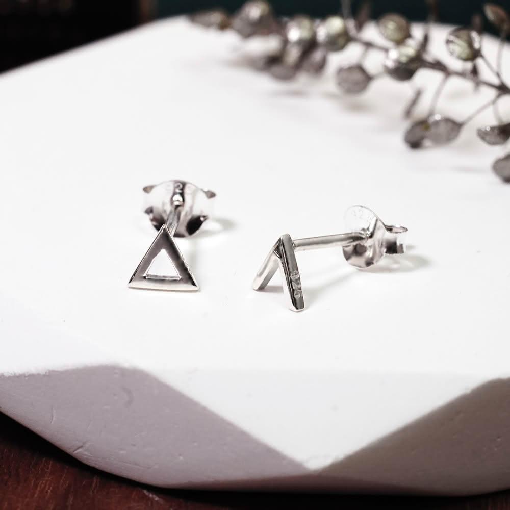 ART64不對稱的平衡 三角形 針式耳環 925純銀耳環(女生 男生 中性耳環)