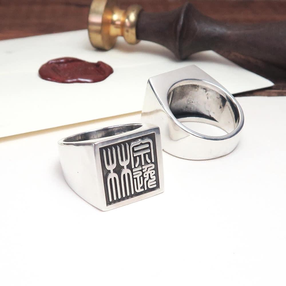 ART64篆刻印章銀戒 大款 (925純銀戒指 男戒 女戒 客製化 訂製戒指)