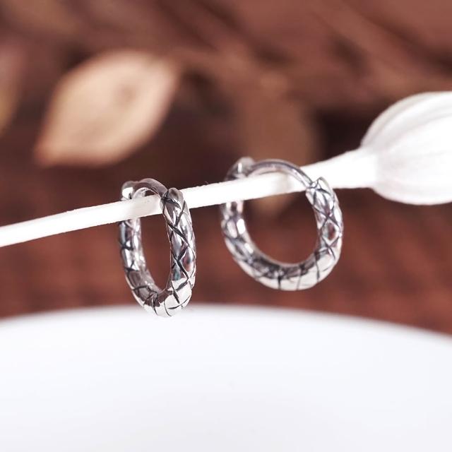 ART64純銀 交錯織紋 易扣耳環 925純銀耳環 女生耳環 男生耳環