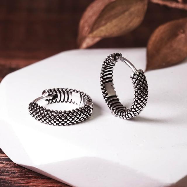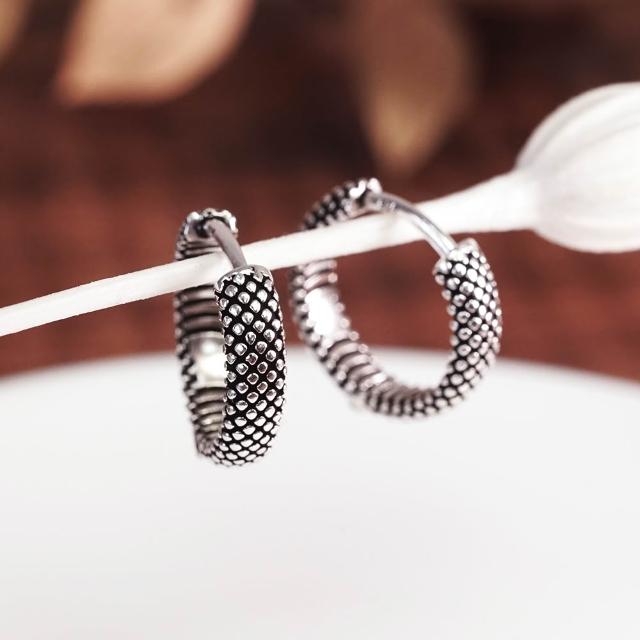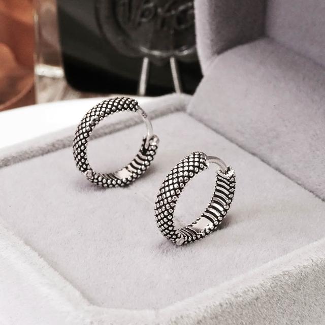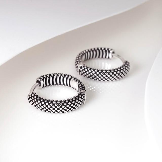 ART64純銀 復古鱗紋 易扣耳環 925純銀耳環 女生耳環 男生耳環
