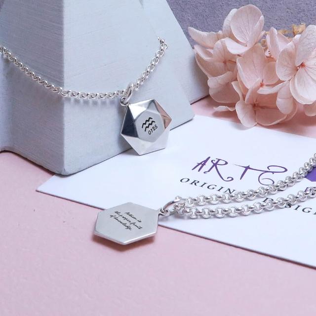 ART64可刻字 六角銀磚項鍊 925純銀 女生飾品 客製化銀飾 情人節 禮物訂製