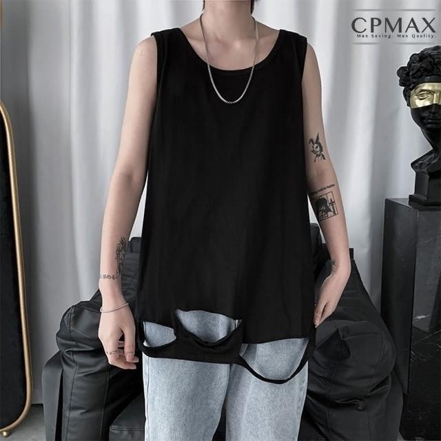 CPMAX刀割破洞背心 潮牌無袖破洞t恤 男百搭純色坎肩背心(男生潮牌長版無袖背心 休閒打底 VE23)