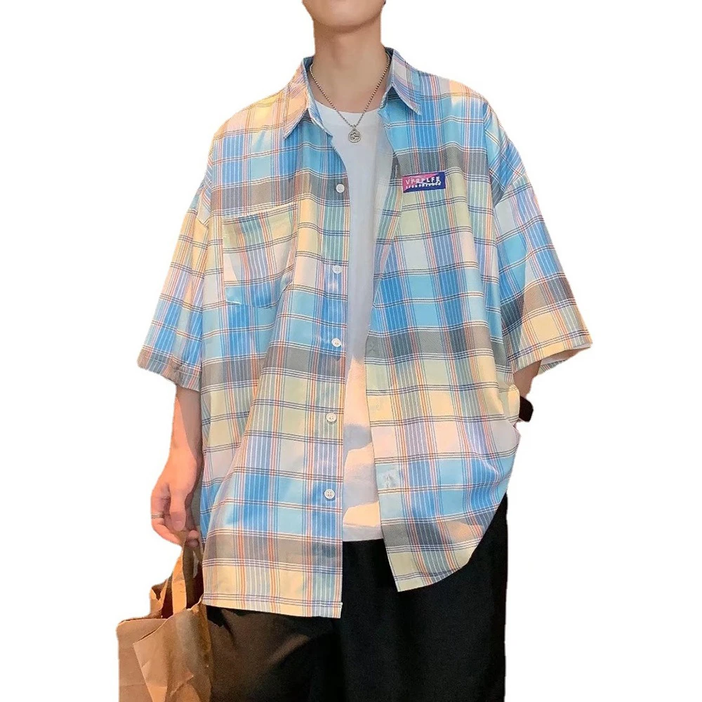 CPMAX韓系格子寬鬆短袖Oversized襯衫(短袖襯衫 潮流日系復古襯衫 休閒襯衫男 B103)