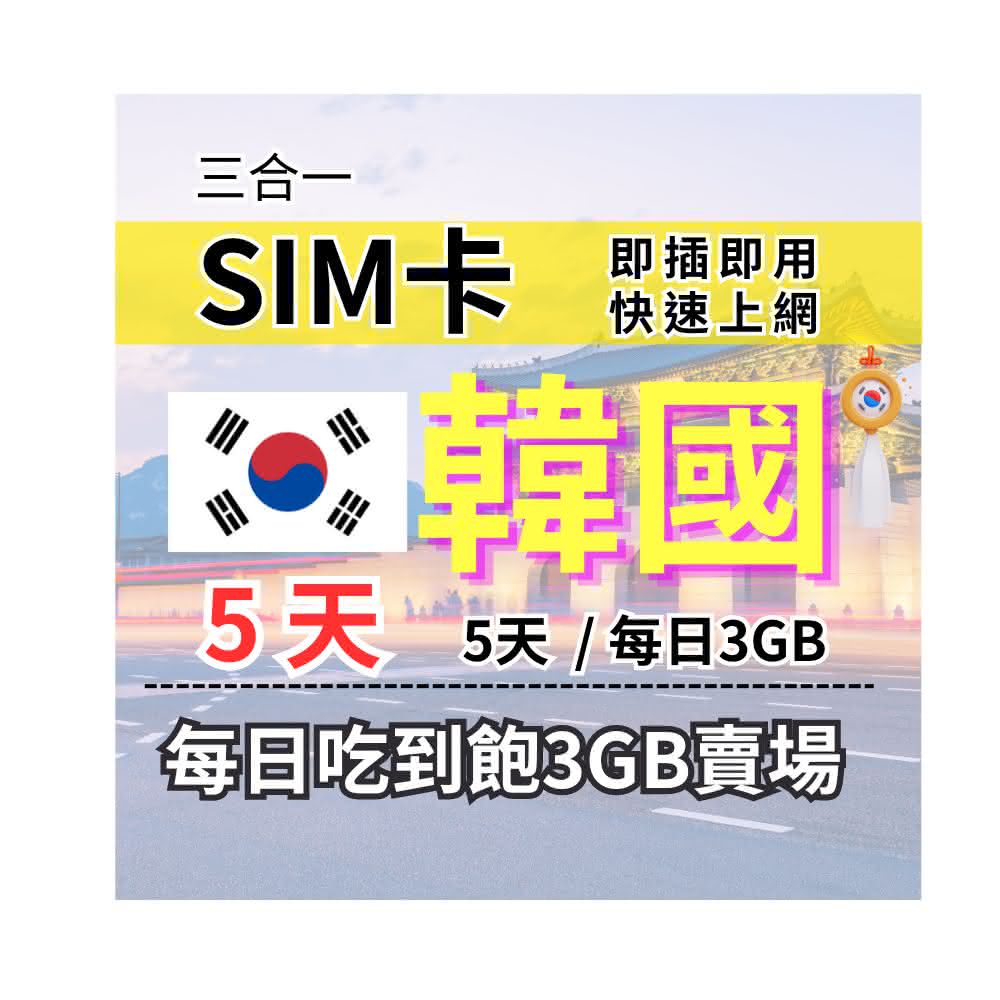 CPMAX韓國旅遊上網 5天每日3GB 高速流量 SKT/KT電信(韓國上網 SIM25)