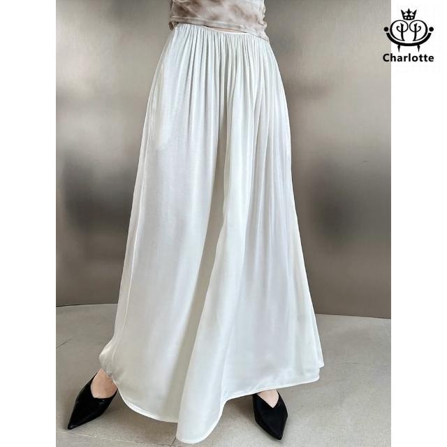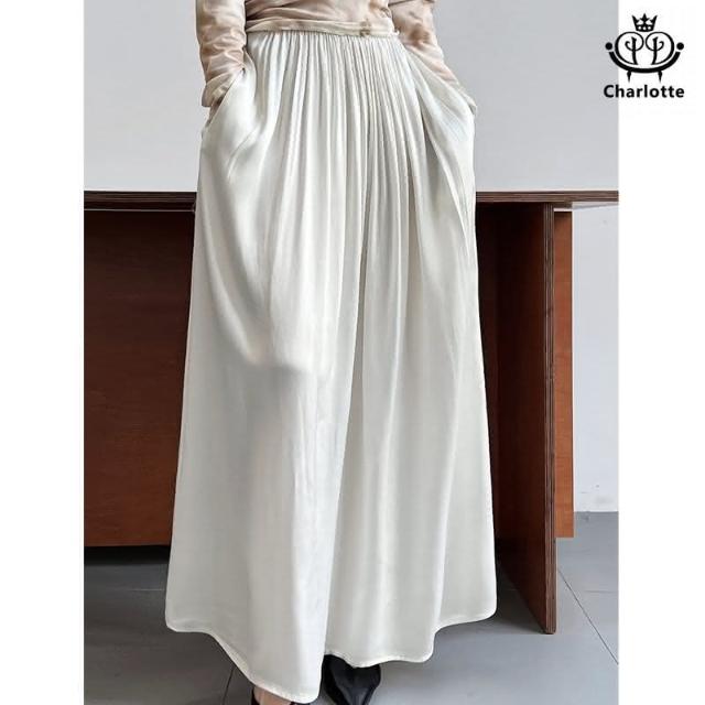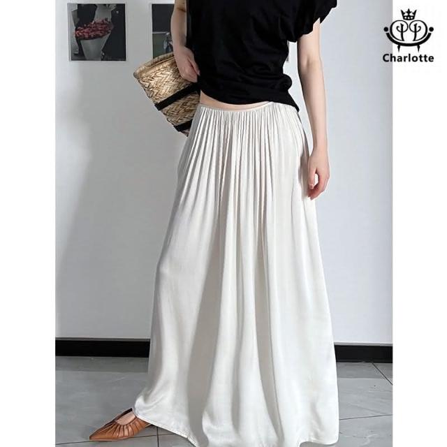 Charlotte 夏綠蒂Charlotte 法式大擺珠光白緞面半身裙 長裙 半身A字長裙 垂感皺摺長裙 唯美系女神半身裙 CHSK115