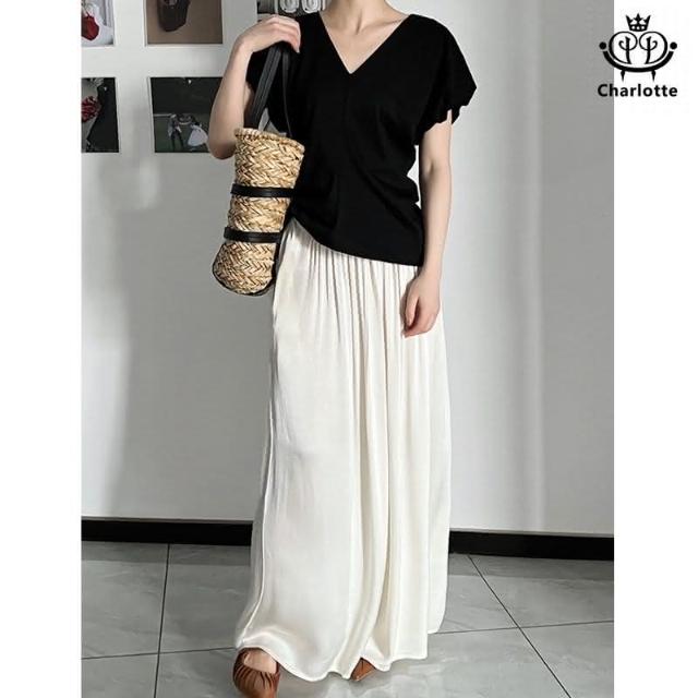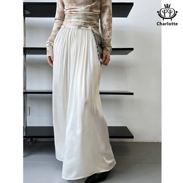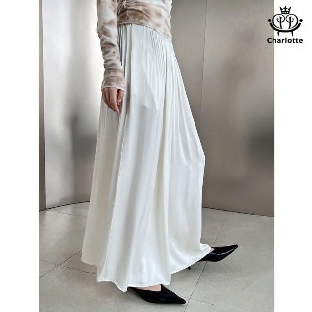 Charlotte 夏綠蒂Charlotte 法式大擺珠光白緞面半身裙 長裙 半身A字長裙 垂感皺摺長裙 唯美系女神半身裙 CHSK115
