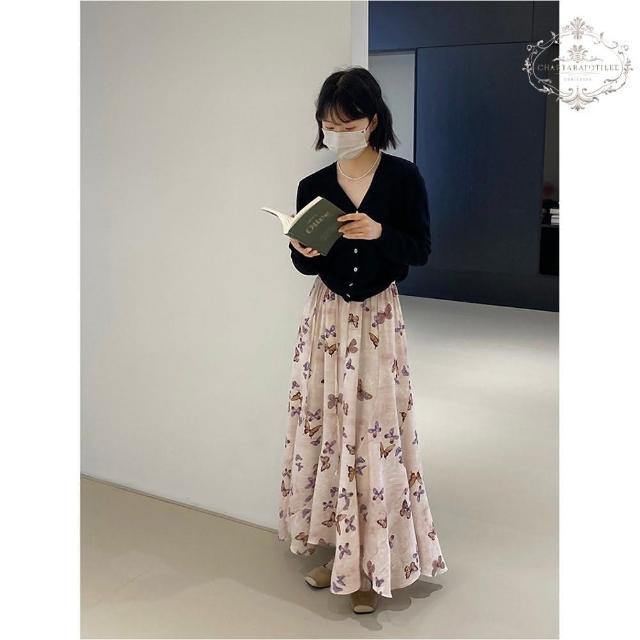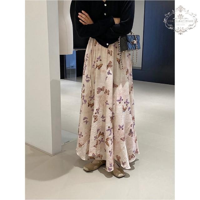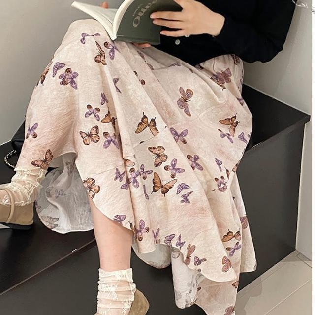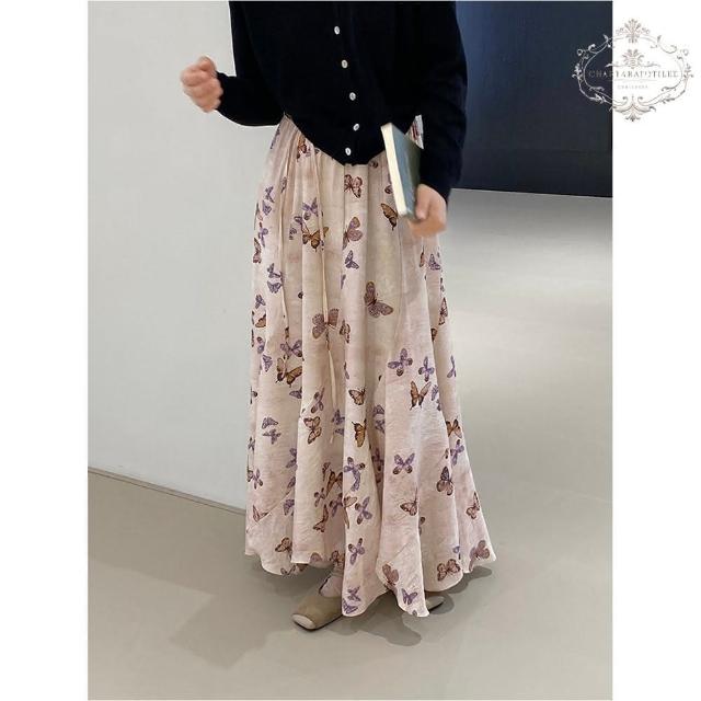 Charlotte 夏綠蒂Charlotte 法系翩翩起舞蝴蝶裙 氛圍感大擺高腰半身裙 春夏印花不規則長裙 大擺裙 傘裙 CHSK137