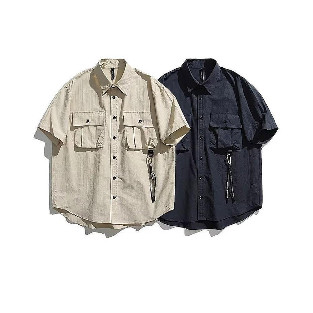 CPMAX日系復古工裝短袖襯衫(男生襯衫 寬鬆襯衫 休閒襯衫 襯衫外套 日系 復古潮牌 戶外休閒 B129)