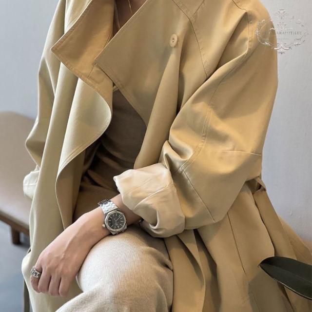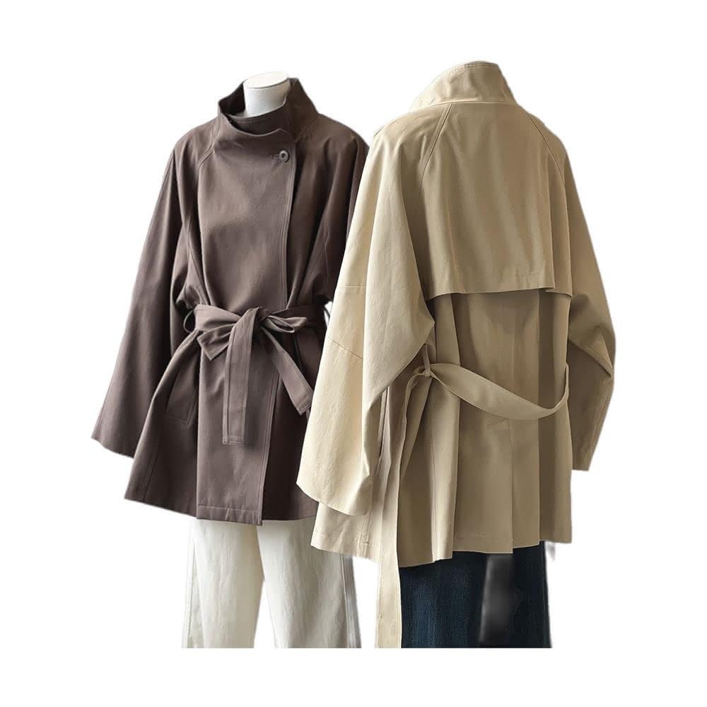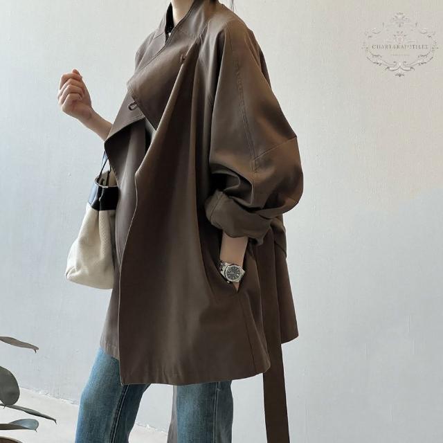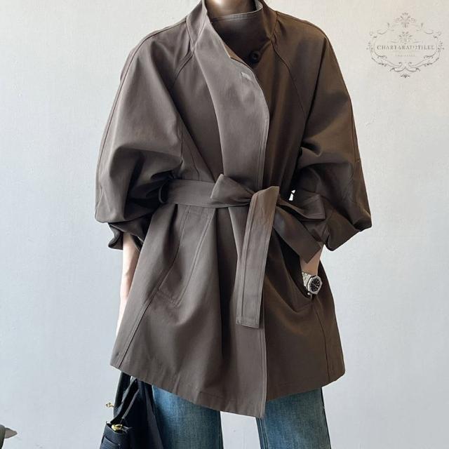 Charlotte 夏綠蒂法式復古氣質風衣外套 中長版寬鬆收腰外套 立領風衣外套 秋冬新款風衣外套 女風衣 CHCO86