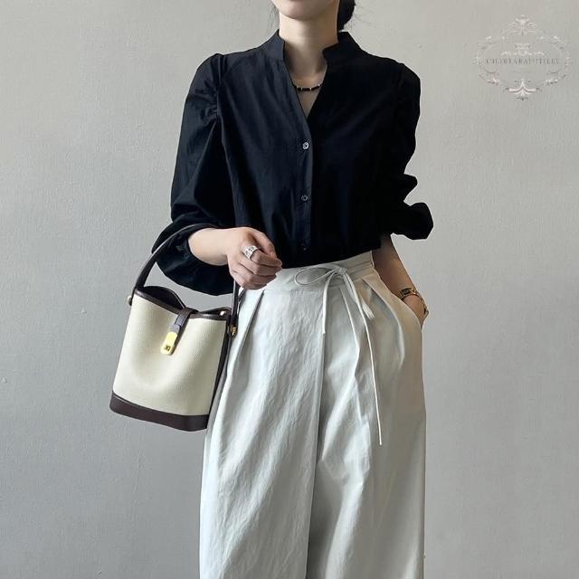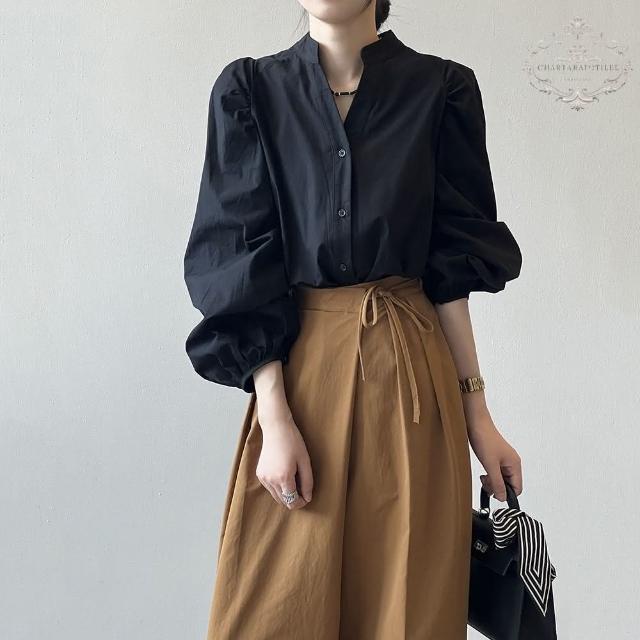 Charlotte 夏綠蒂法式氣質立領襯衫 秋冬褶皺泡泡袖娃娃衫 長袖泡泡衫 氣質公主袖 CHSH137