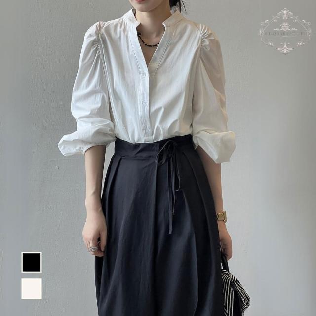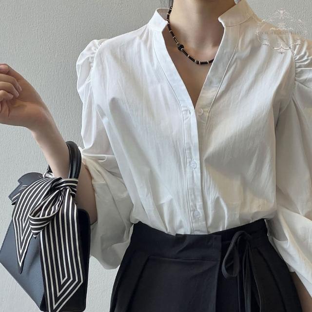 Charlotte 夏綠蒂法式氣質立領襯衫 秋冬褶皺泡泡袖娃娃衫 長袖泡泡衫 氣質公主袖 CHSH137