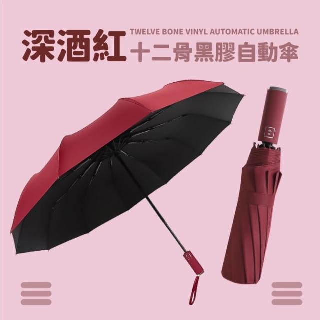 小麥購物十二骨黑膠自動傘(莫蘭迪色 晴雨傘 兩用傘 加大 遮陽傘 雨傘 傘 自動傘 防風)