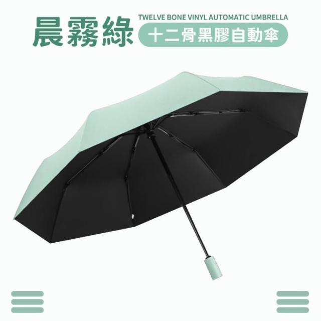 小麥購物十二骨黑膠自動傘(莫蘭迪色 晴雨傘 兩用傘 加大 遮陽傘 雨傘 傘 自動傘 防風)