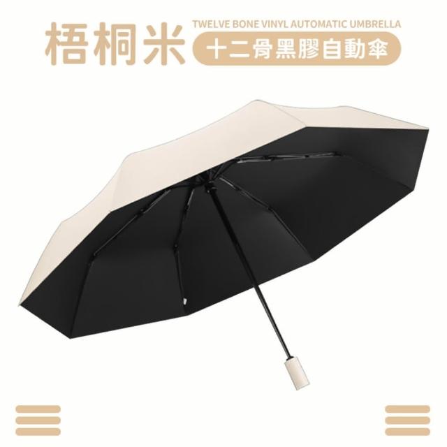 小麥購物十二骨黑膠自動傘(莫蘭迪色 晴雨傘 兩用傘 加大 遮陽傘 雨傘 傘 自動傘 防風)