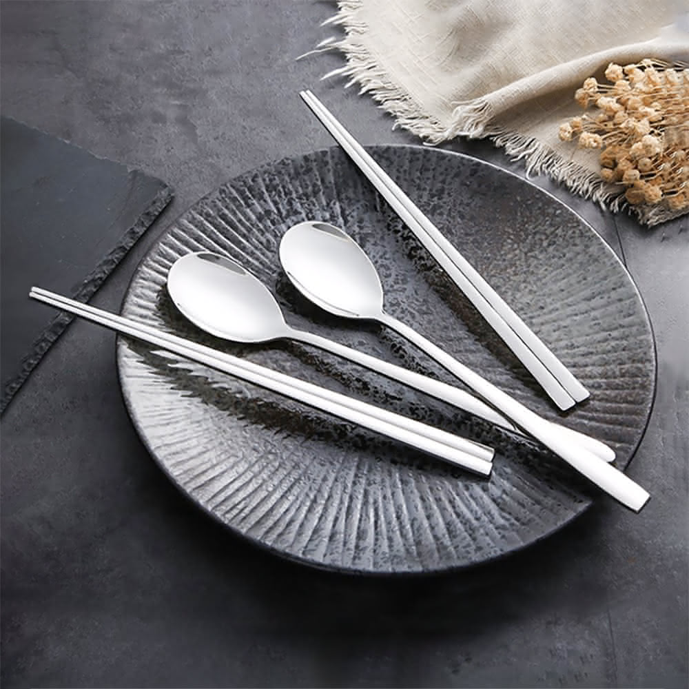 小麥購物韓式餐具(扁筷 韓國 不鏽鋼筷 湯匙 筷子 韓國湯匙 韓國扁筷 餐具 廚房 料理)