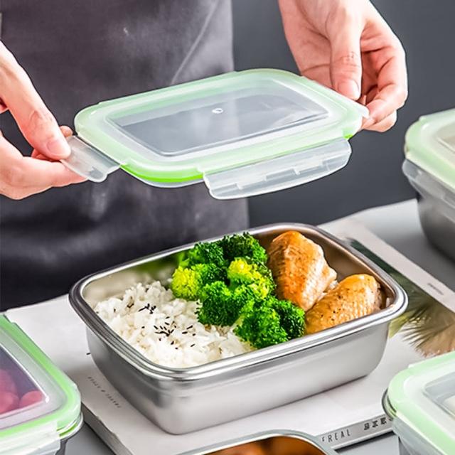 小麥購物密封式不鏽鋼卡扣保鮮盒 550ml 850ml 2800ml (冰箱保鮮盒 帶蓋密封盒 便當 餐盒 不銹鋼)
