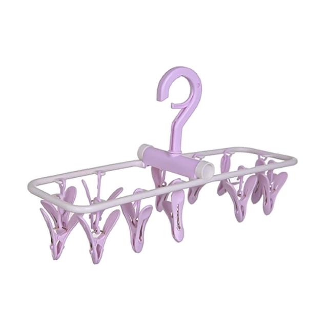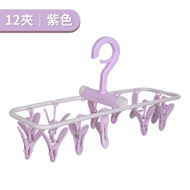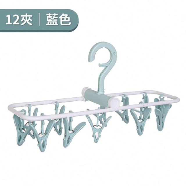 小麥購物摺疊衣架 12夾(曬衣 晾曬 褲夾 曬襪 曬衣夾 置物 曬衣架)