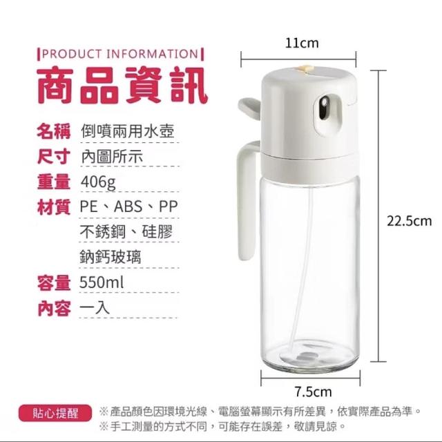 小麥購物倒噴兩用油壺(精準控油瓶 噴倒噴霧油瓶罐 氣炸鍋噴油瓶 玻璃油壺 調味料瓶罐)
