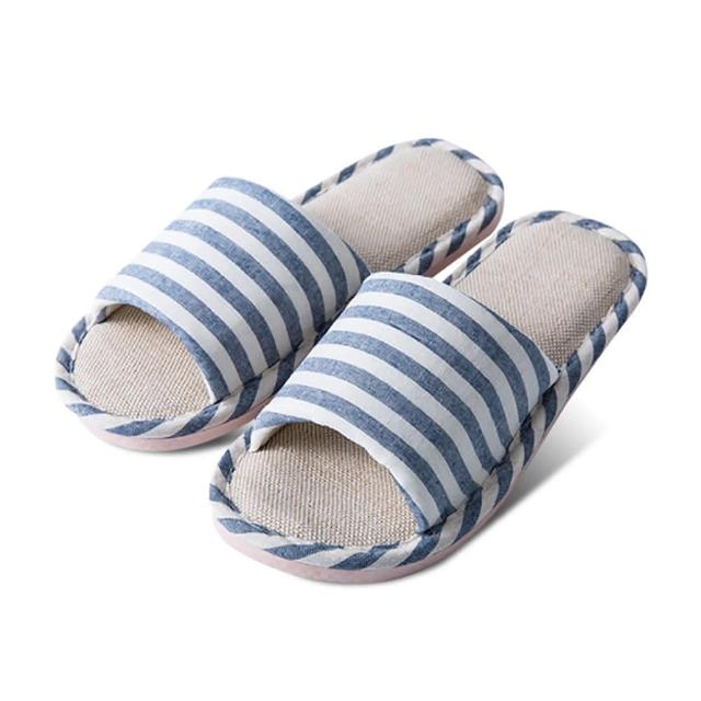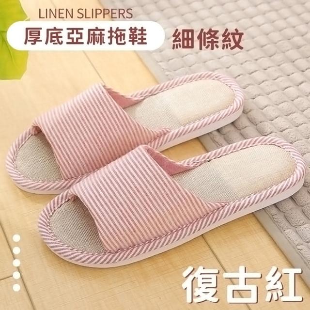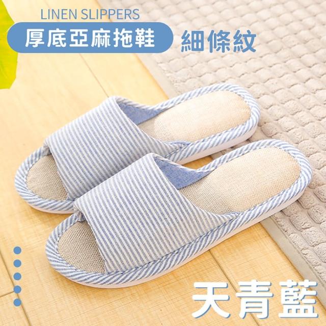 小麥購物厚底亞麻拖鞋(拖鞋 居家拖鞋 室內鞋 室內拖鞋 室內拖 男鞋 女鞋 亞麻拖鞋 鞋子 條紋 厚底)