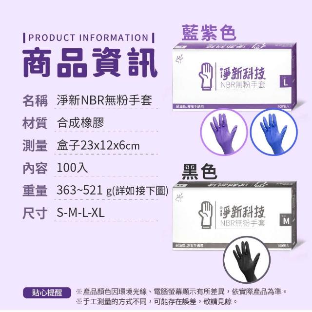小麥購物淨新NBR無粉手套 100入/盒(淨新 一次性手套 無粉手套 塑膠手套 手套 無細粉手套)
