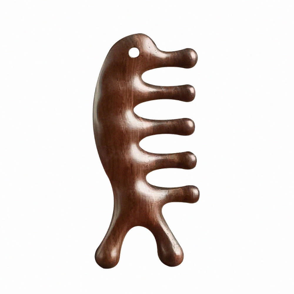 小麥購物魚形檀木梳(通經絡 原木梳 按摩 刮頭皮梳 按摩器 金絲檀木頭皮按摩 按摩梳 魚型按摩梳 梳子)