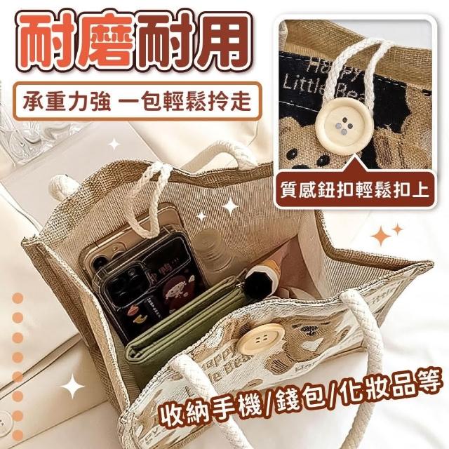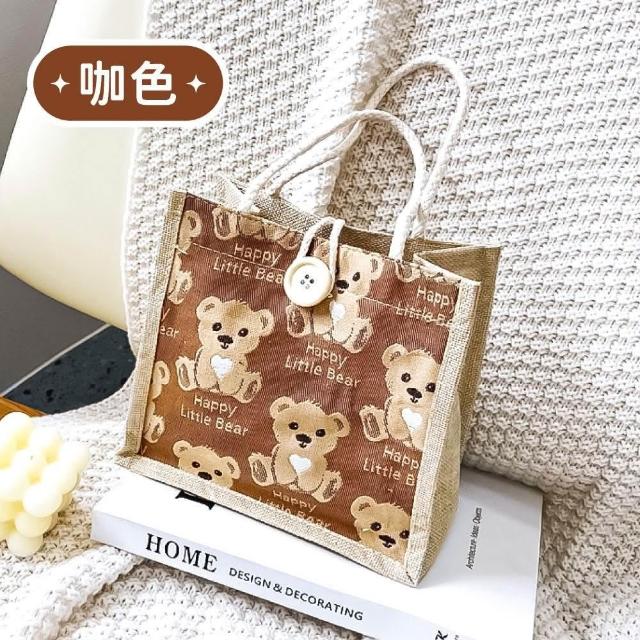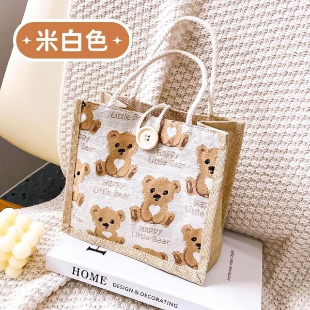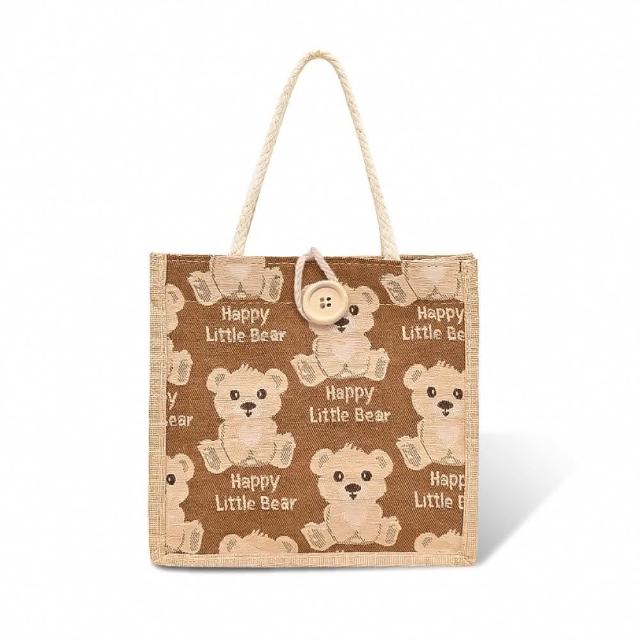 小麥購物小熊亞麻手提袋(手提包 手提袋 小熊手提袋 亞麻手提袋 包包 午餐袋 便當包 環保提袋 外出包)