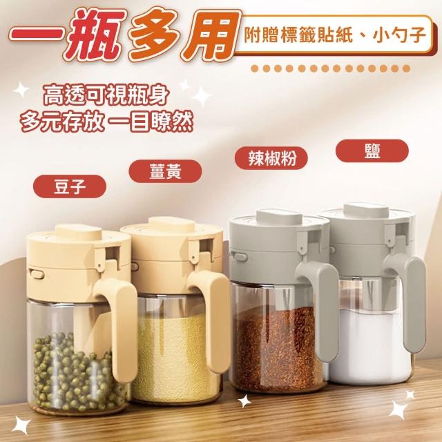 小麥購物二合一調味罐(調味料收納 調味罐 玻璃調味罐 帶勺調味罐 調味盒 調味瓶 調味料罐)