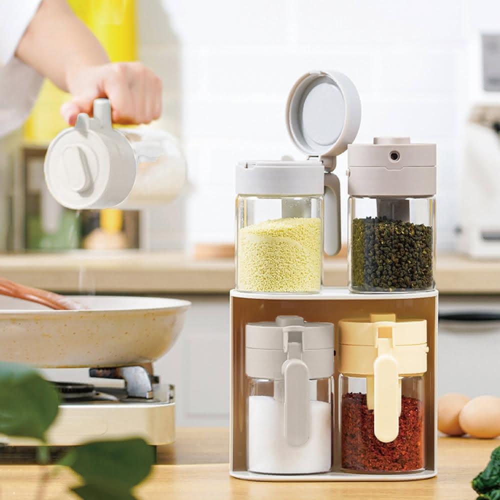 小麥購物二合一調味罐(調味料收納 調味罐 玻璃調味罐 帶勺調味罐 調味盒 調味瓶 調味料罐)