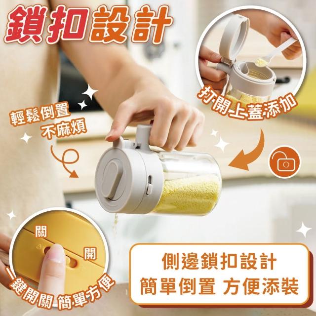 小麥購物二合一調味罐(調味料收納 調味罐 玻璃調味罐 帶勺調味罐 調味盒 調味瓶 調味料罐)