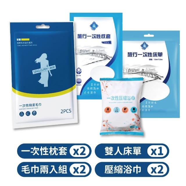 小麥購物一次性寢具 單人 / 雙人 旅行套組(枕套 床單 單人 雙人 拋棄式 免洗 枕頭套 旅行必備 保潔套 床單套 保潔墊)