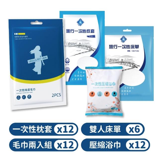 小麥購物一次性寢具 單人 / 雙人 旅行套組(枕套 床單 單人 雙人 拋棄式 免洗 枕頭套 旅行必備 保潔套 床單套 保潔墊)