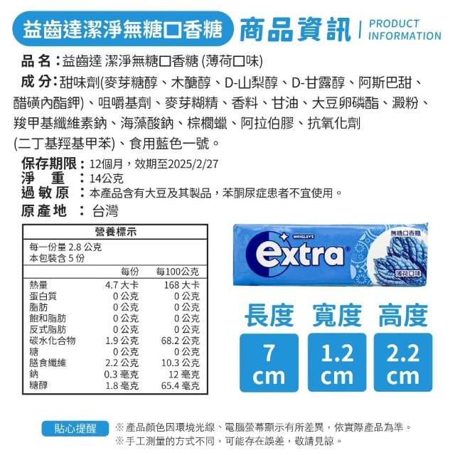 小麥購物Extra益齒達 潔淨無糖口香糖 薄荷口味(14g 口香糖 無糖口香糖 口氣清新 提神)