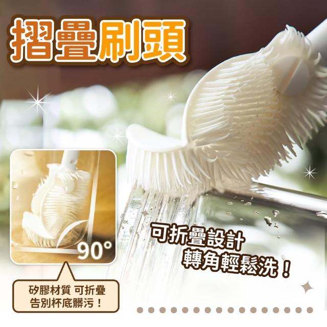 小麥購物矽膠清洗杯刷(長柄杯刷 杯刷 360°全方位清潔刷 可摺叠刷頭清潔刷 無死角杯刷 矽膠杯刷 奶瓶刷 水杯刷)