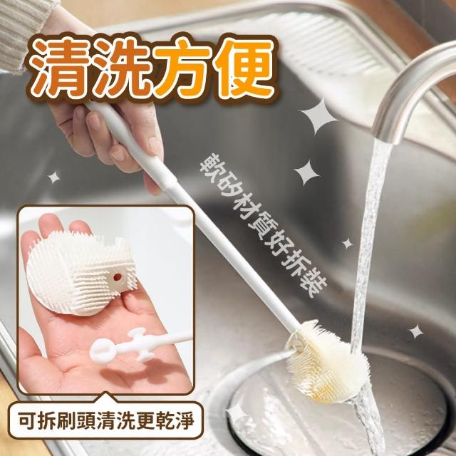 小麥購物矽膠清洗杯刷(長柄杯刷 杯刷 360°全方位清潔刷 可摺叠刷頭清潔刷 無死角杯刷 矽膠杯刷 奶瓶刷 水杯刷)