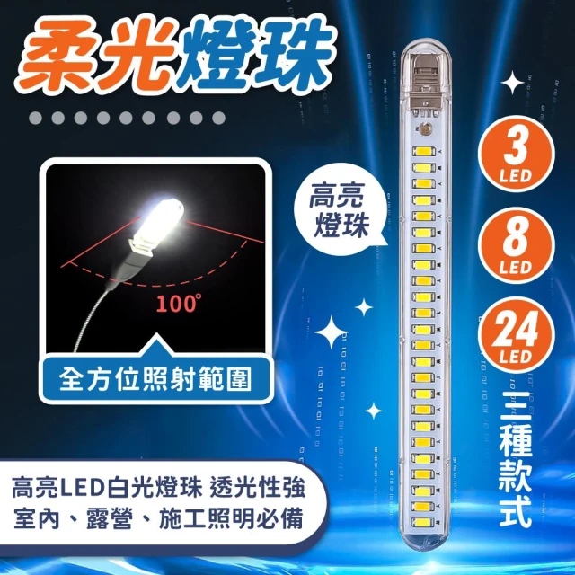 小麥購物USB小夜燈 3燈 8燈 24燈|白光(LED USB桌燈 小夜燈 照明燈 小檯燈 電燈 露營燈 檯燈 床頭燈 工作燈)