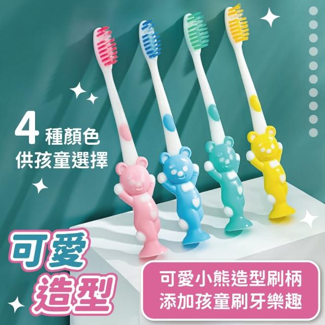 小麥購物兒童軟毛牙刷4入組 卡通吸盤牙刷 可愛牙刷 小熊牙刷 環保裝 兒童牙刷 牙刷