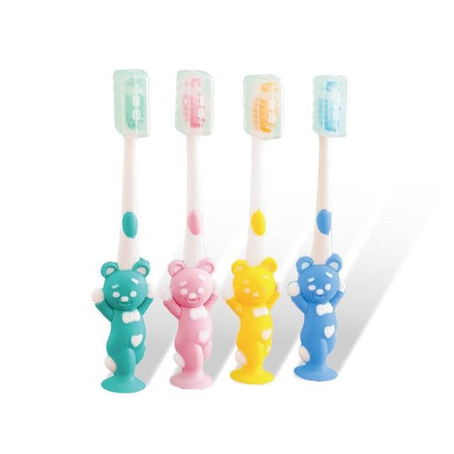 小麥購物兒童軟毛牙刷4入組 卡通吸盤牙刷 可愛牙刷 小熊牙刷 環保裝 兒童牙刷 牙刷
