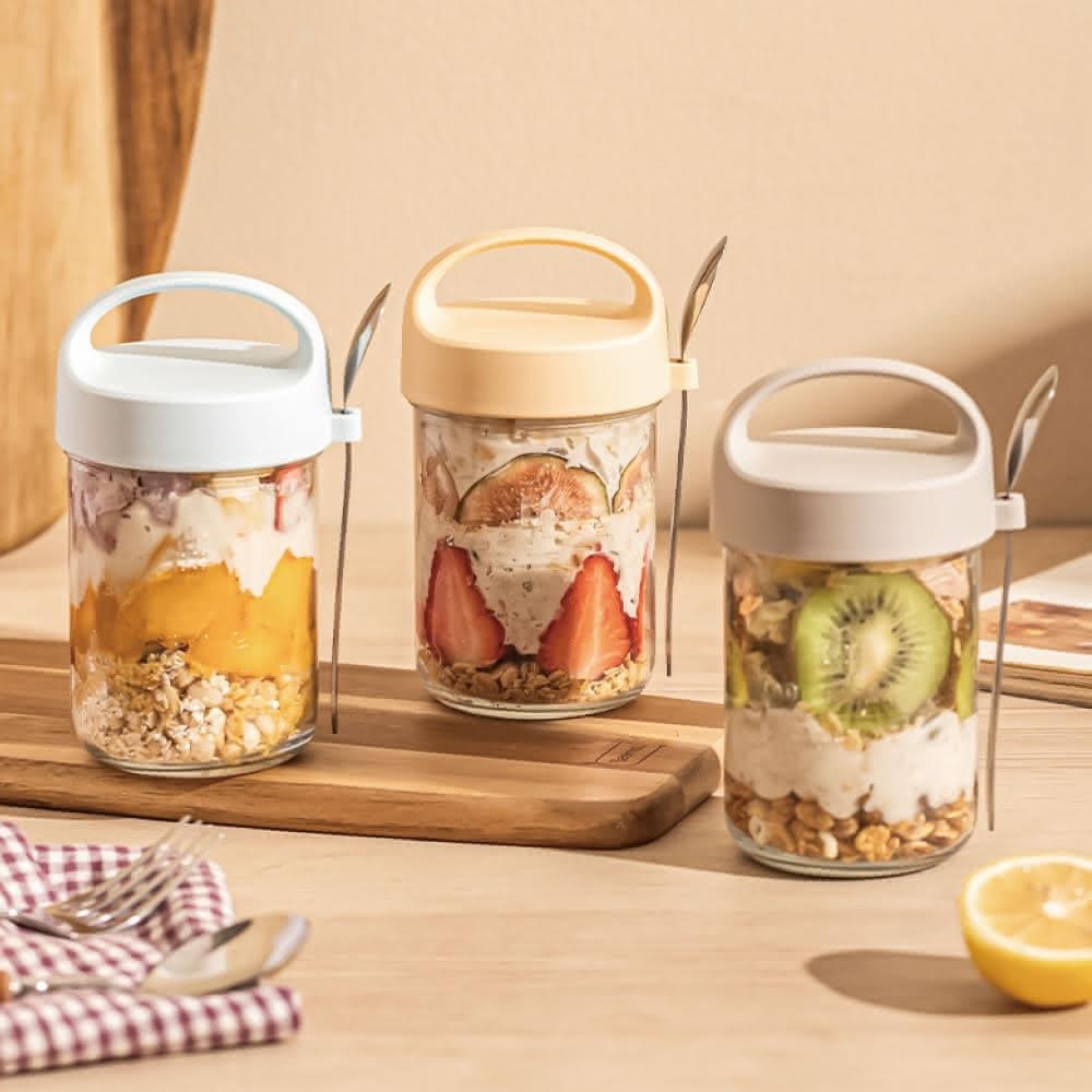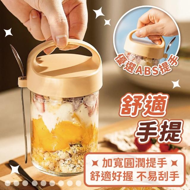 小麥購物隔夜燕麥罐 附湯匙 優格杯 燕麥杯 麥片杯 早餐杯 沙拉杯 密封杯 玻璃罐 密封罐 梅森杯