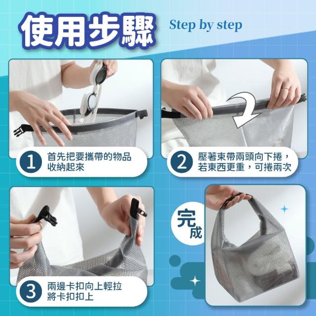 • 袋子裝好,將兩側卡扣向下捲即可