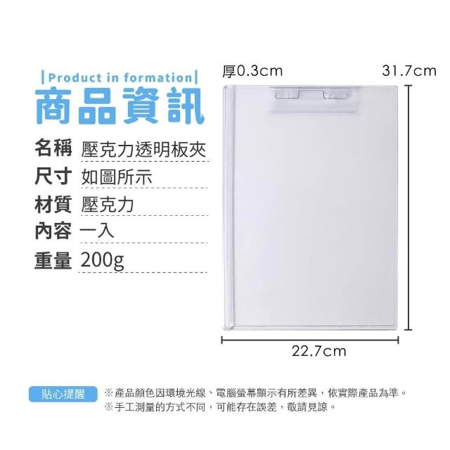 小麥購物壓克力透明板夾 寫字板 透明板夾 A4版夾 壓克力版夾 文件夾板 紙板夾 夾板 硬板夾 墊板夾 簽名夾