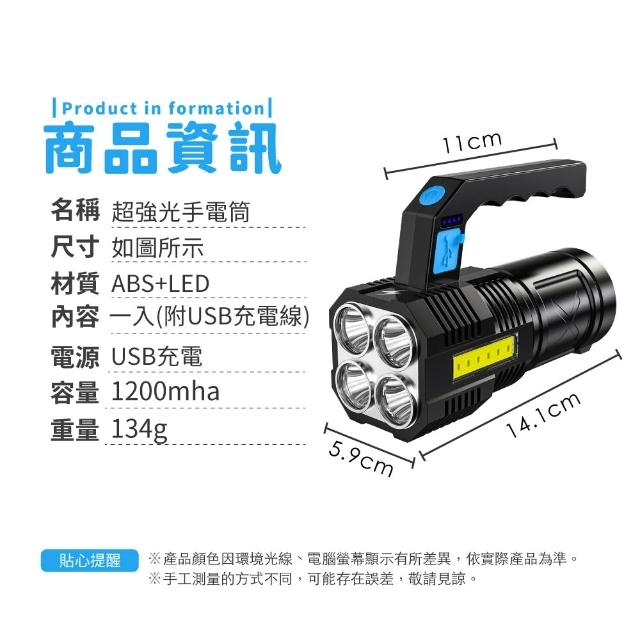 小麥購物超強光手電筒 手提探照燈 手電筒 手提燈 照明燈具 手提led燈 充電燈 強光 USB充電 超亮遠射 長續航