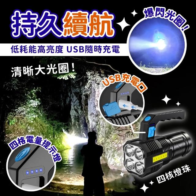 小麥購物超強光手電筒 手提探照燈 手電筒 手提燈 照明燈具 手提led燈 充電燈 強光 USB充電 超亮遠射 長續航